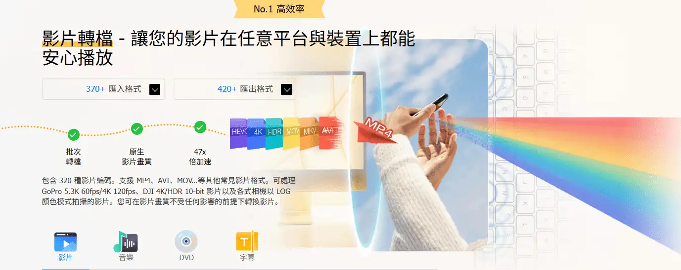 • 视频格式转换、DVD 转换、Ai音频处理、视频防抖等