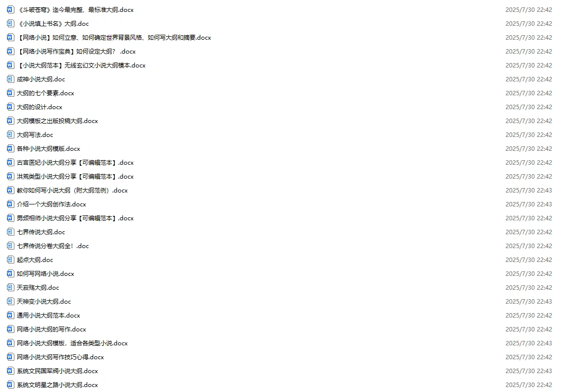 • AI网络小说大纲模板各种素材合集适合各类型小说