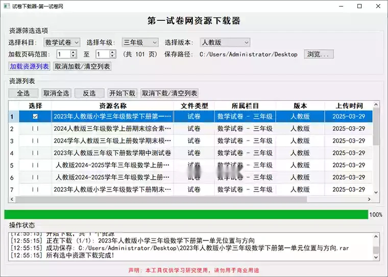 - 如人教、苏教、北师大等,工具可批量下载,下载后的试卷全是压缩包