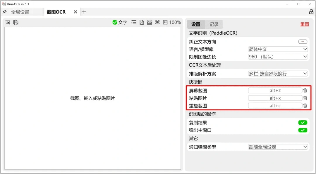 • 功能:截图OCR / 批量OCR / PDF识别 / 二维码 / 公式识别