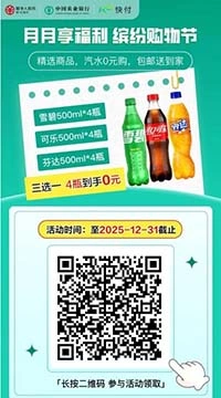 - 这是农业银行出的月月享福利活动,每个月都可以领,这次的是领10元数字人民币,然后可以买4瓶饮料。
