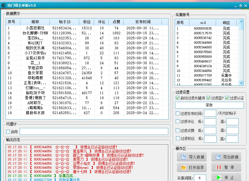 • 微博热门博主采集可以采集最新热门话题