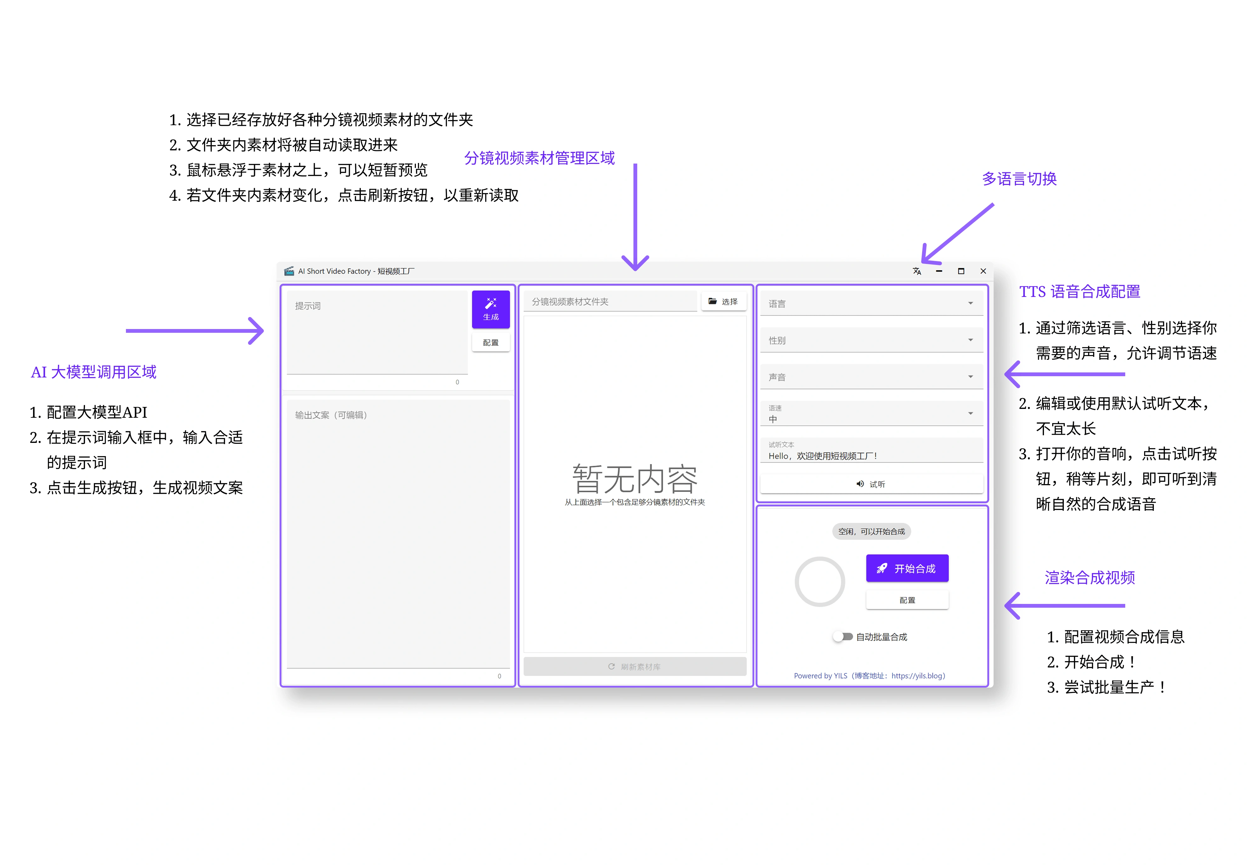 - 它能一键生成产品营销或泛内容短视频,通过AI自动完成脚本撰写、配音、字幕与剪辑渲染。