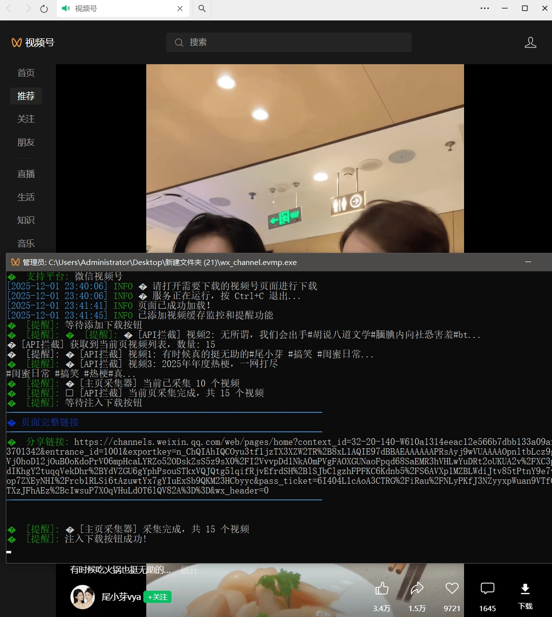 - 软件通过微信官方视频api注入进行下载-绿色合规合法
