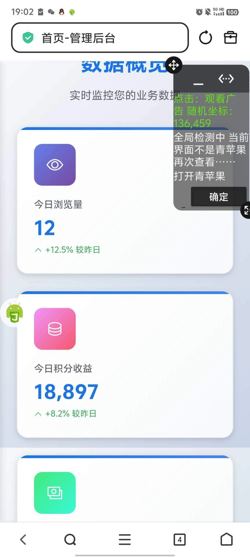 - 通过和广告商合作,观看广告挂机获得收益