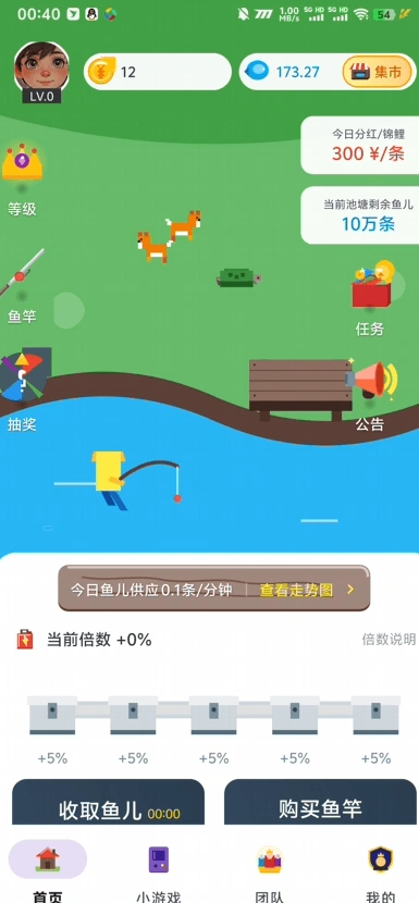 - 鱼塘小游戏,通过观看广告钓鱼获得小鱼